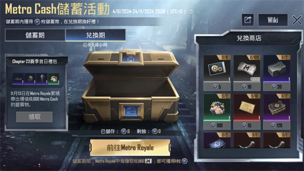 11月13日-11月24日期间,消耗之前积累的储蓄币,可在活动页面右侧的兑换商店兑换游戏道具、地铁逃生物资等奖励!